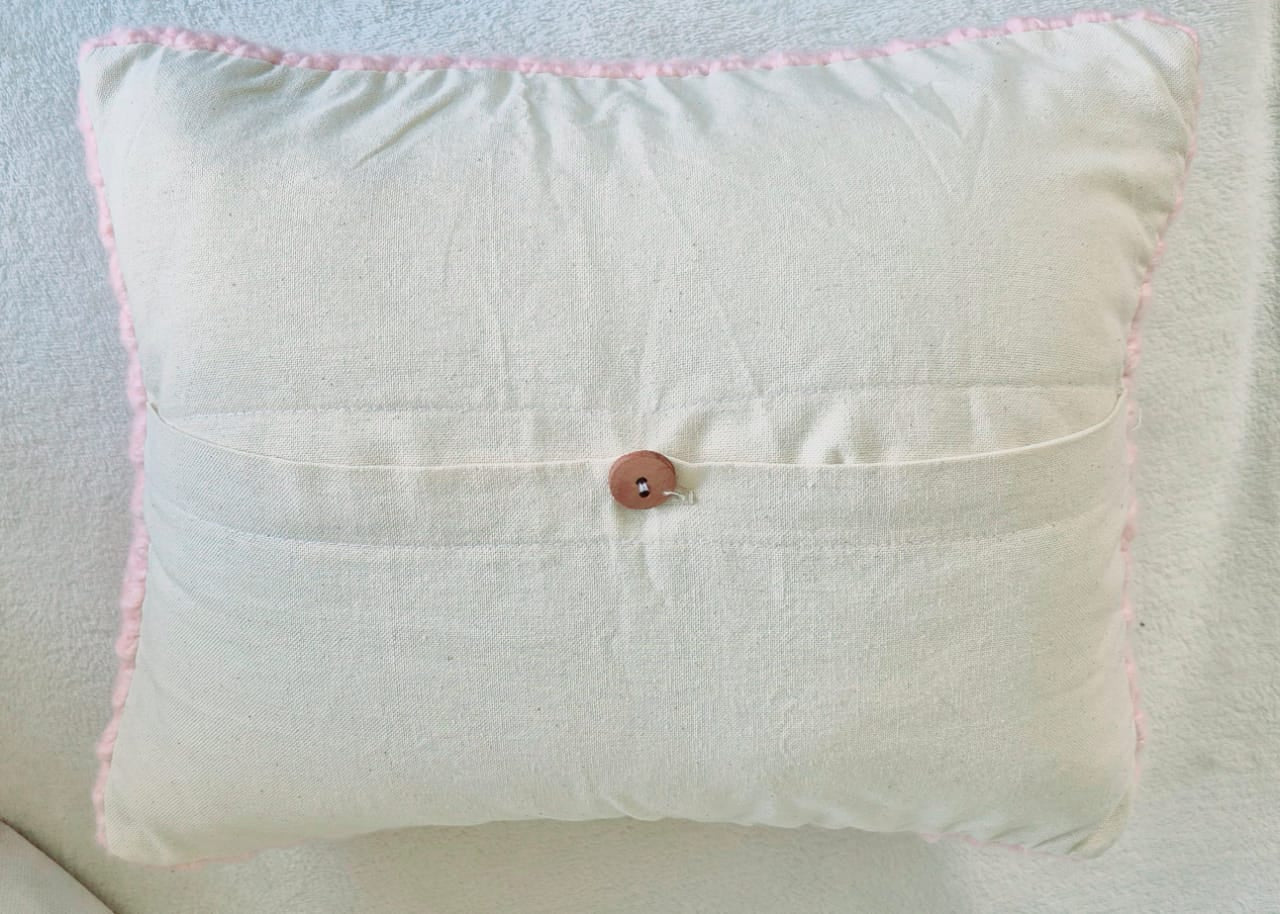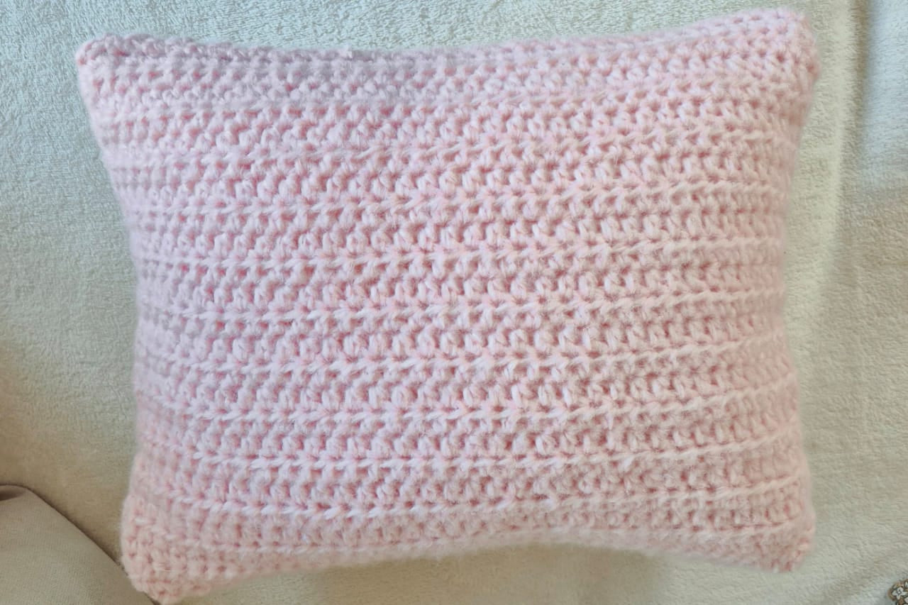 Cojin de lana crochet rosado